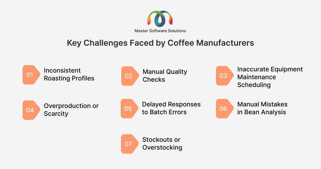 The coffee manufacturing process involves multiple complex steps, from sourcing beans to roasting, packaging, and distribution. However, without a streamlined system in place, manufacturers often face operational inefficiencies that affect quality and productivity. Below are some of the key challenges that coffee manufacturers commonly face: