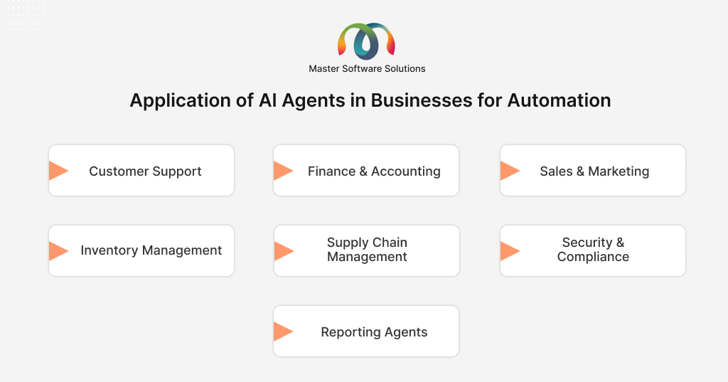 AI agents can help you automate various business operations, improve efficiency, reduce costs associated with handling repetitive tasks and making data-driven decisions, and enhance customer service. The applications of AI agents for autonomous business automation are: