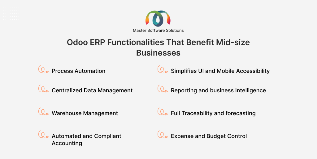 The Odoo ERP system helps organizations, especially small and medium-sized enterprises, navigate common business challenges with its modular, integrated, and flexible suite of applications. Here are the Odoo ERP functionalities that benefit mid-size businesses.