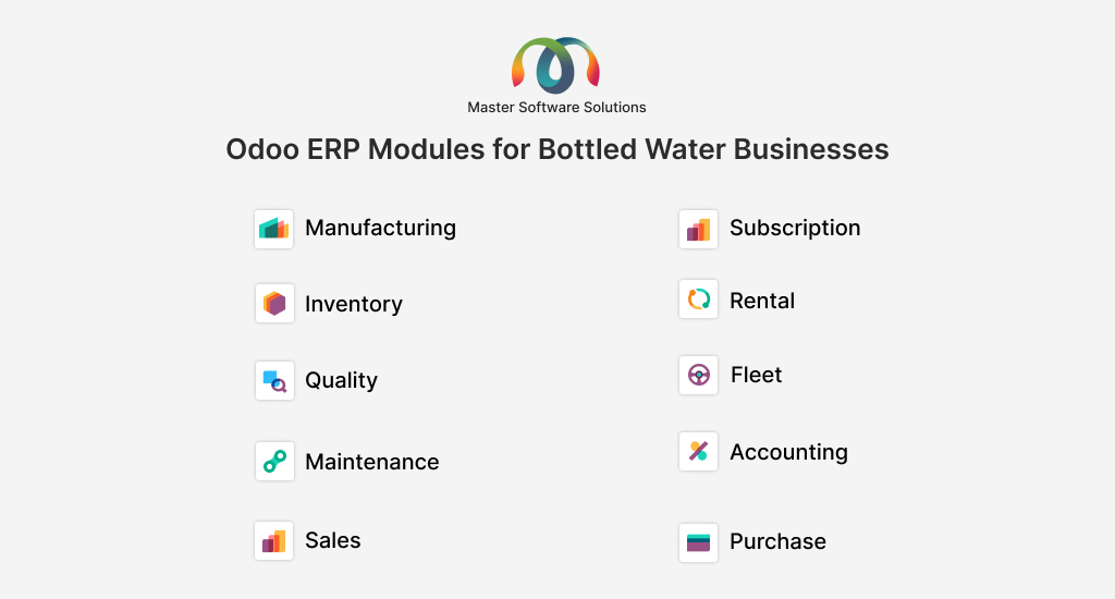 Master Software Solutions is an IT services company that is a certified Odoo partner. We offer a one-stop solution for Odoo consulting services, including implementation, migration, module development, customization, integration, and support and maintenance. If you are a bottled water manufacturing business and want to implement Odoo, contact us.