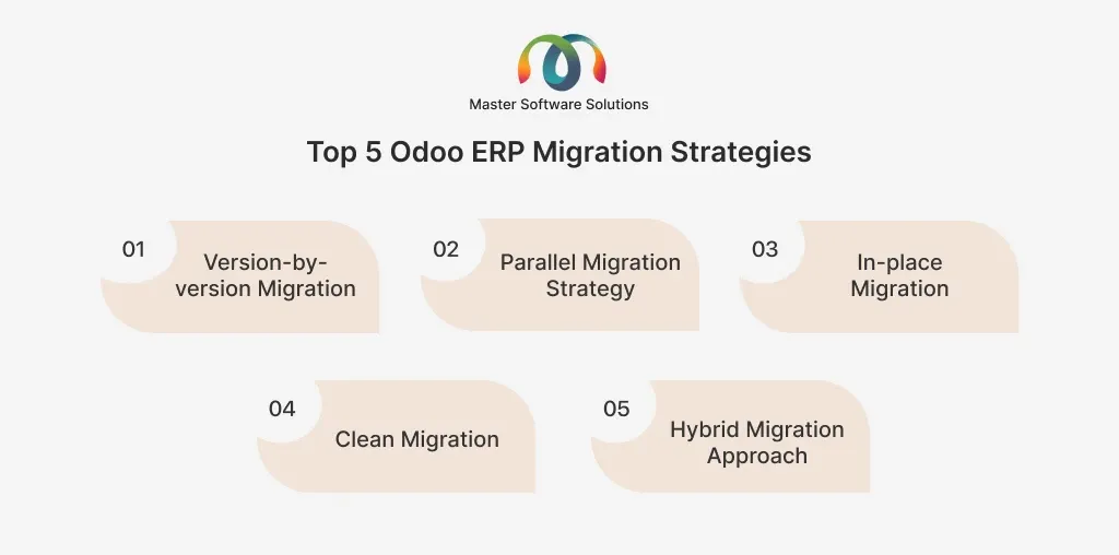 Choosing the right Odoo ERP migration strategy is critical to ensure a smooth transition with minimal risk to business operations. Each plan differs in complexity, cost, downtime, and suitability. Understanding these strategies enables organizations to select an approach that aligns with their technical requirements and operational goals. Here are the top 5 Odoo ERP migration strategies.